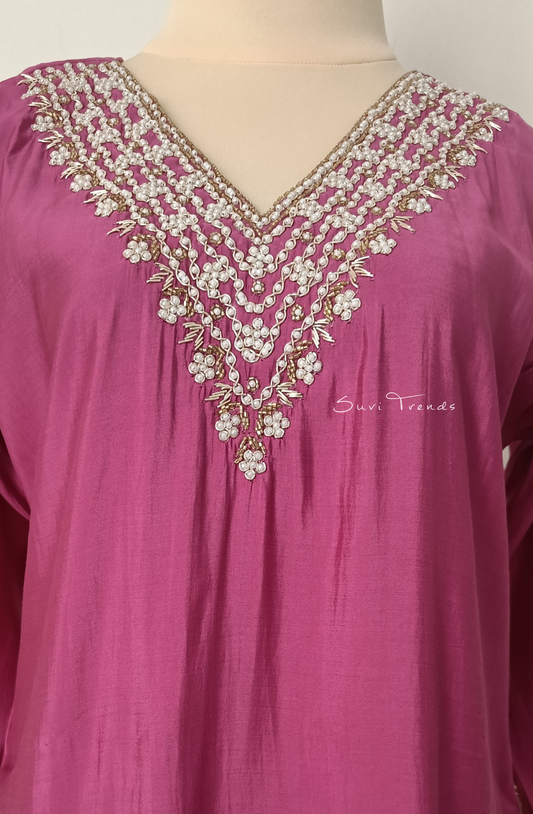 Premium Art Silk Kurta And Dhoti set - Lavender