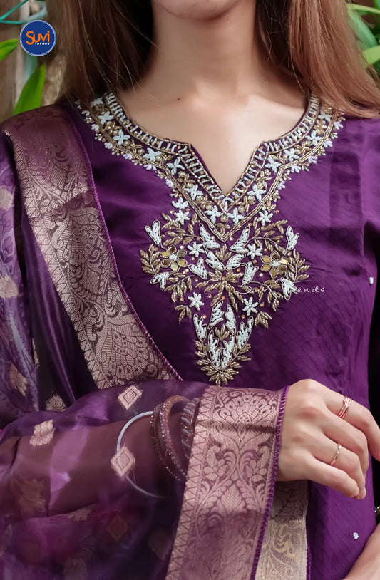 Premium Silk Dhoti Set with Colour Zari - Dark Lavender