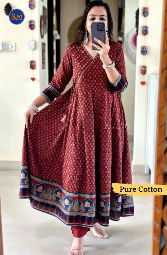 All Over Paisley Printed Angrakha Anarkali Set - Purple