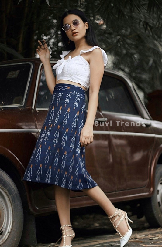 Indigo Broad Belt Ikat Skirt