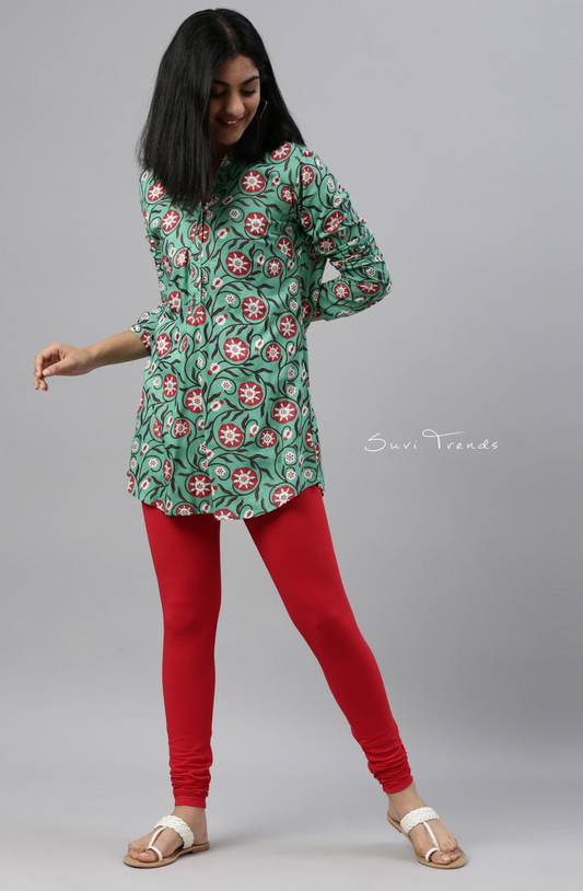 Jade Green Cotton Churidar Leggings