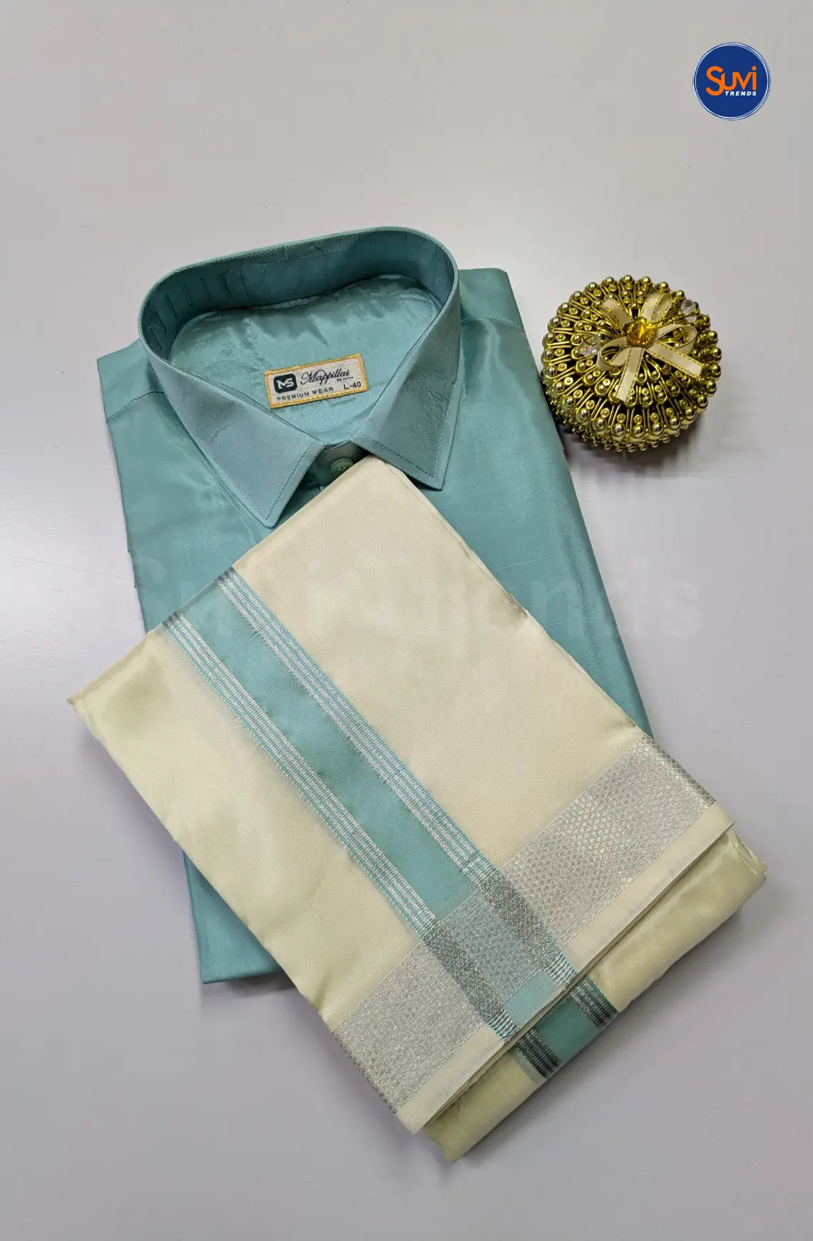 Kids Dhoti Set With Colour Zari - Pastel Rama