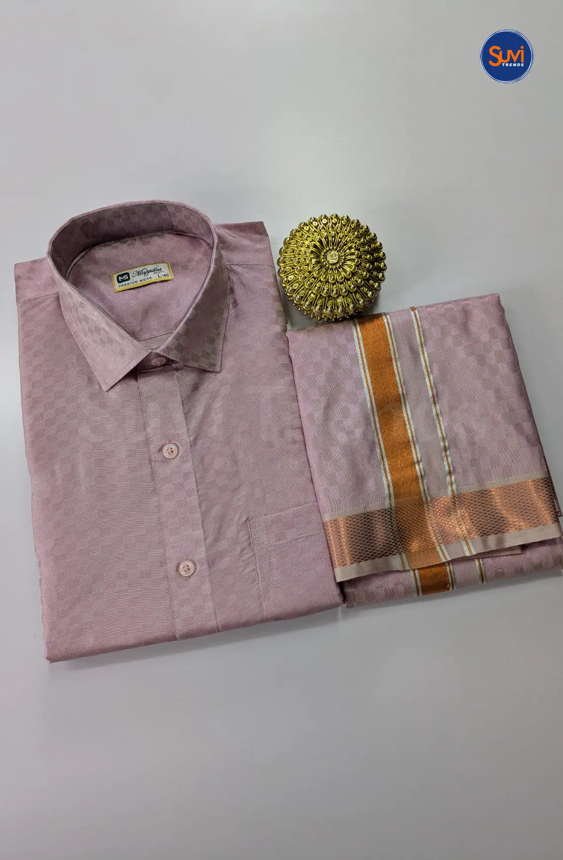 Textured Weave Japan Silk Dhoti Set - Petal Pink